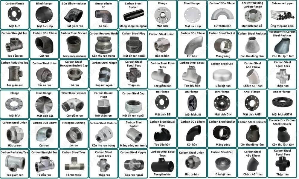Phụ kiện ống thép là những thành phần quan trọng trong hệ thống ống dẫn. Sản phẩm đóng vai trò kết nối, điều tiết và hỗ trợ cho việc xây dựng. Chúng bao gồm nhiều loại như măng sông, bích, van, co, cút, hay giá đỡ. Được sản xuất từ các loại vật liệu như thép carbon, thép không rỉ, và các hợp kim thép chất lượng cao.