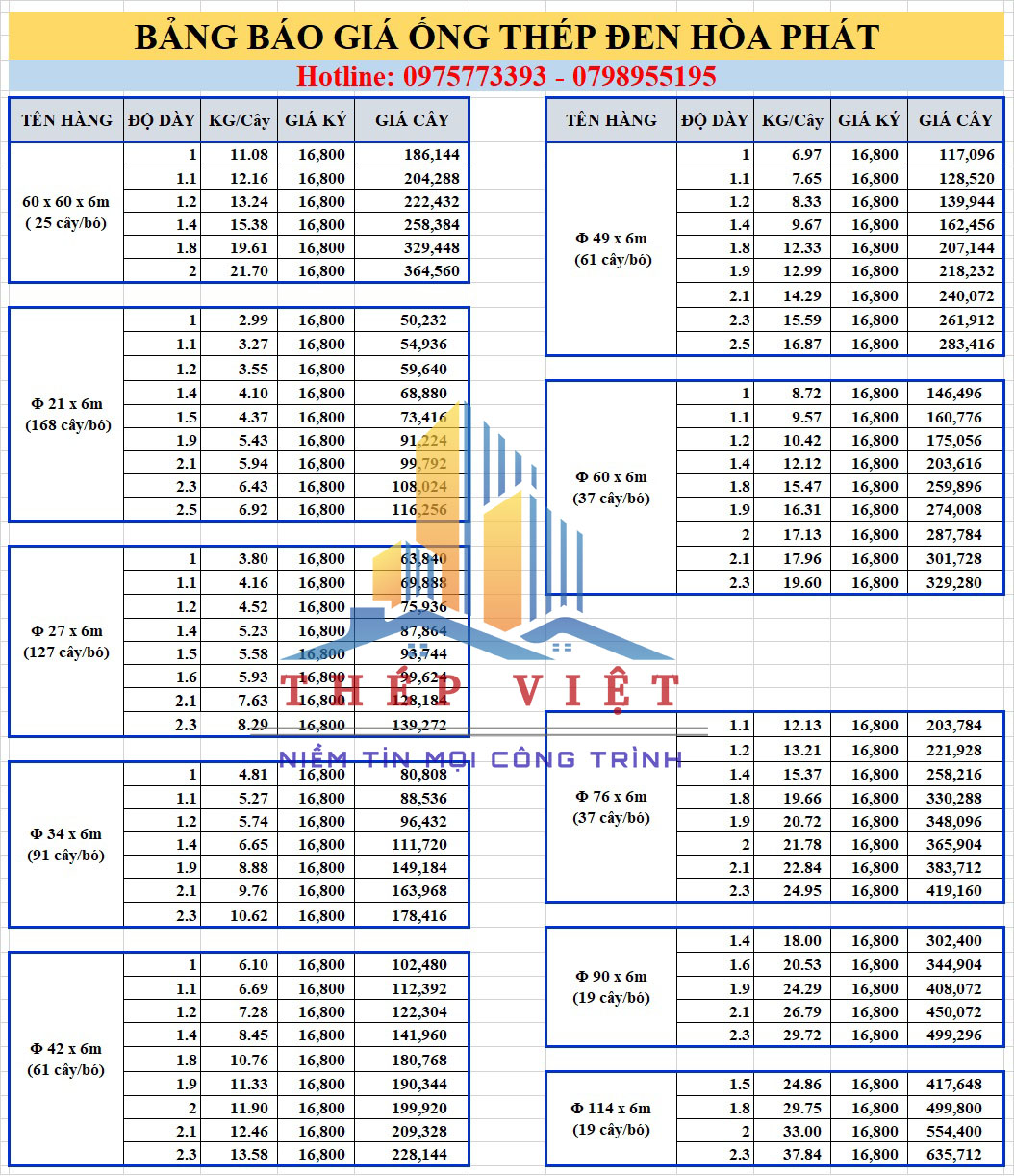 Báo giá ống thép đen Hòa Phát mới nhất – Đại lý chính thức Thép Việt